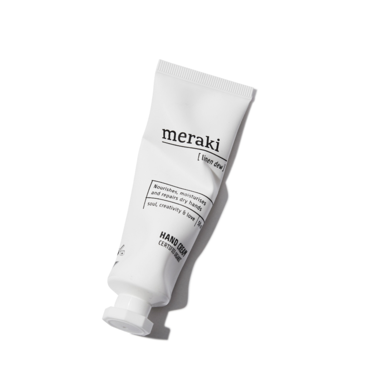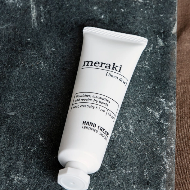 Hand cream, linen dew, 1.7 fl.oz/ 50 ml. Take care of your hands with this wonderful certified organic hand cream, Linen Dew, from Meraki which smells amazing. The hand cream care, moisturise and soften the hands without being greasy due to the organic aloe vera, avocado oil and cocoa butter which the hand cream is made of. Linen Dew comes in a practical size so you can easily bring it when you find yourself on the road. Use the hand cream as needed when your hands need extra moisture and care. It is suitable for everyday use and for all skin types.
