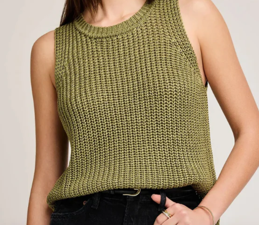This classic and flattering knit vest features a crew neckline, sleeveless style, relaxed fit and soft yarn. Style with cutoff denim shorts or the Matcha Bloom skirt and slides.