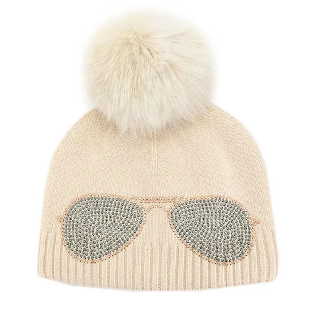 Looking cool has never been easier than with the Peter Glenn Sweet Shades Hat with Real Fur Fox Pom. You’re sure to get noticed with the unique rhinestone aviator appliqué accented by a fox fur pom-pom for that high-end après look. This hat is also sure to keep you comfortable too with a knitted design that’s soft, warm, and breathable for all-day use.