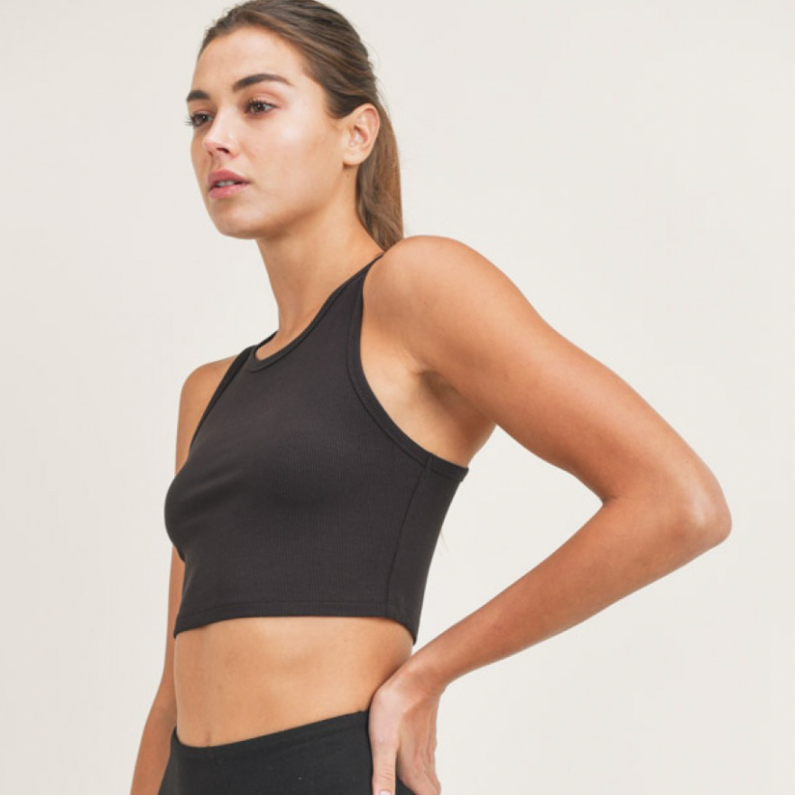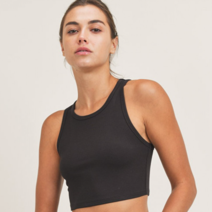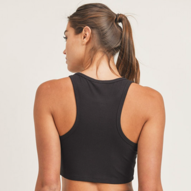 Essential Micro-Ribbed Cropped Racer Athleisure Tank Top