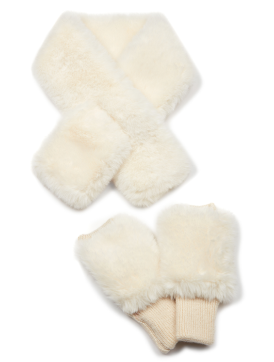 The Whistler Set comes with a faux rex pull-through scarf and matching Texty Time Mittens. The perfect faux fur gift set for your favorite people, and of course, for you!