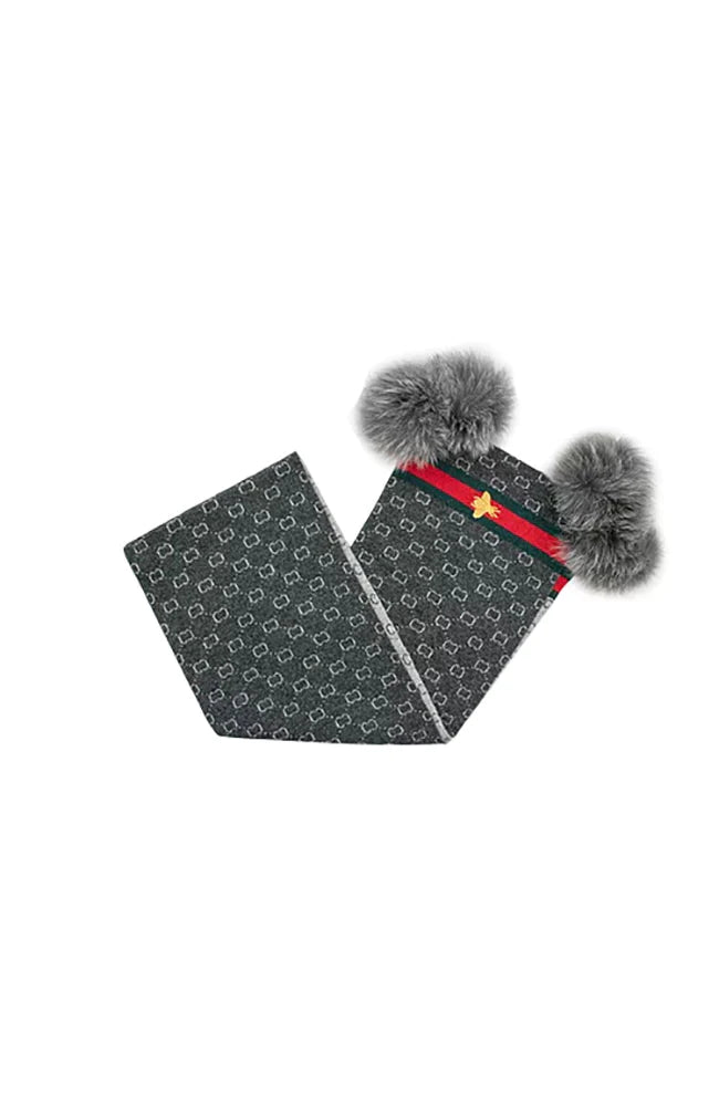 Gucci Print Scarf with Bee Emblem & Fox Poms