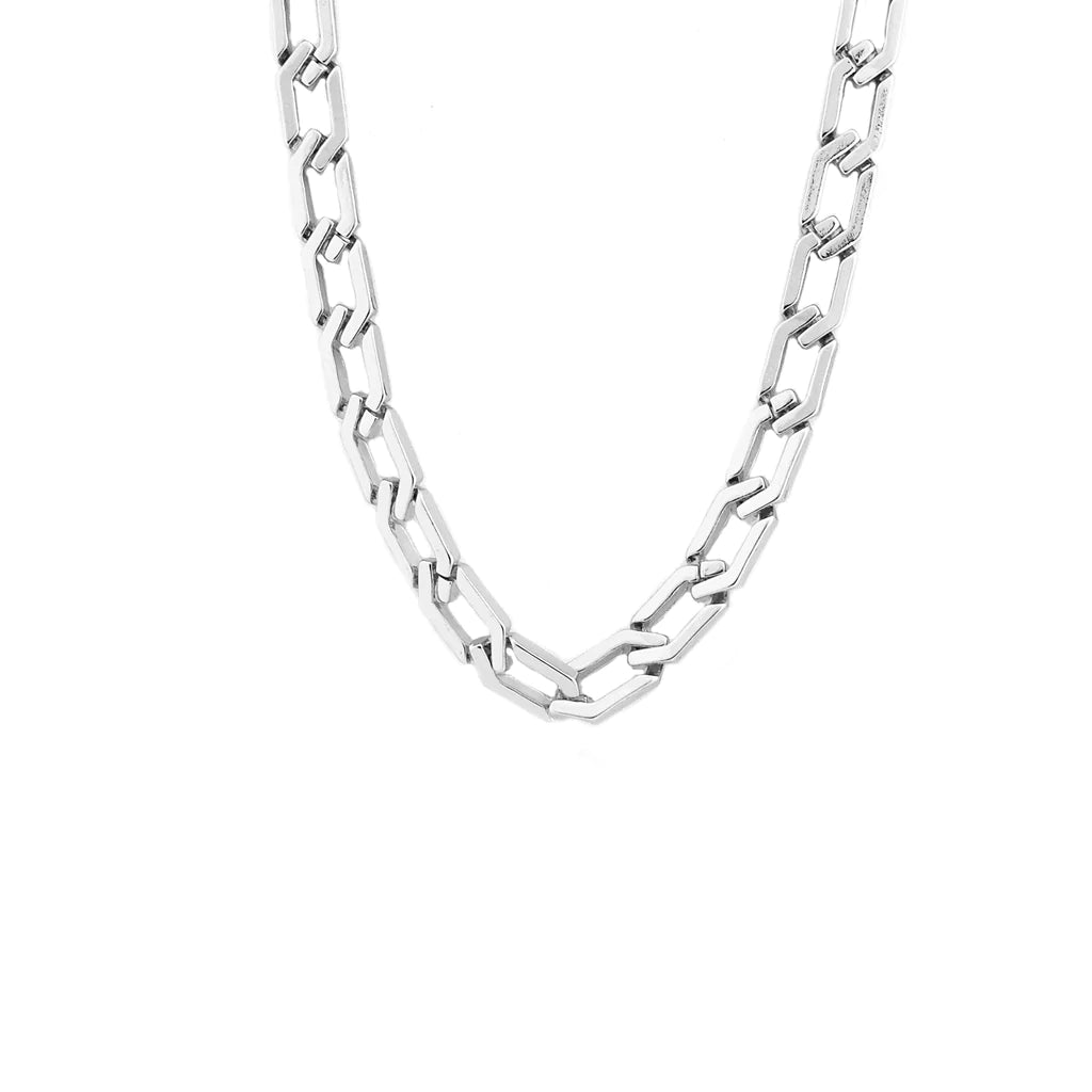 metal elongated prong link chain necklace. 15 3/4" length + 2" extension. lobster claw clasp.