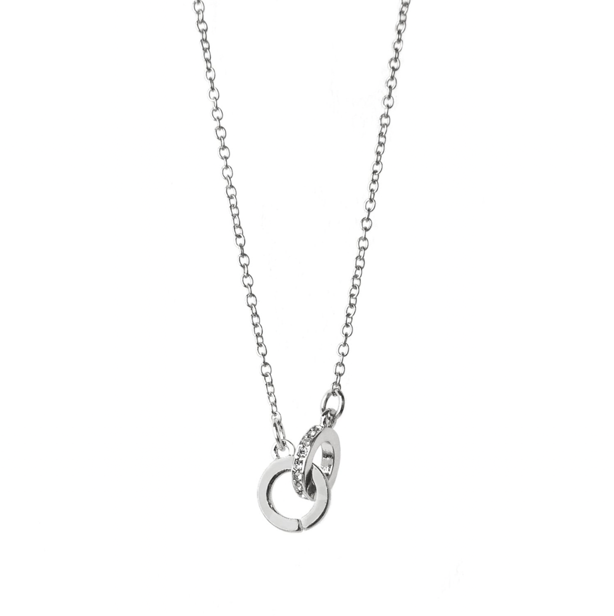 Interlocking rings necklace with pave detail. 16" plus 3" extension.