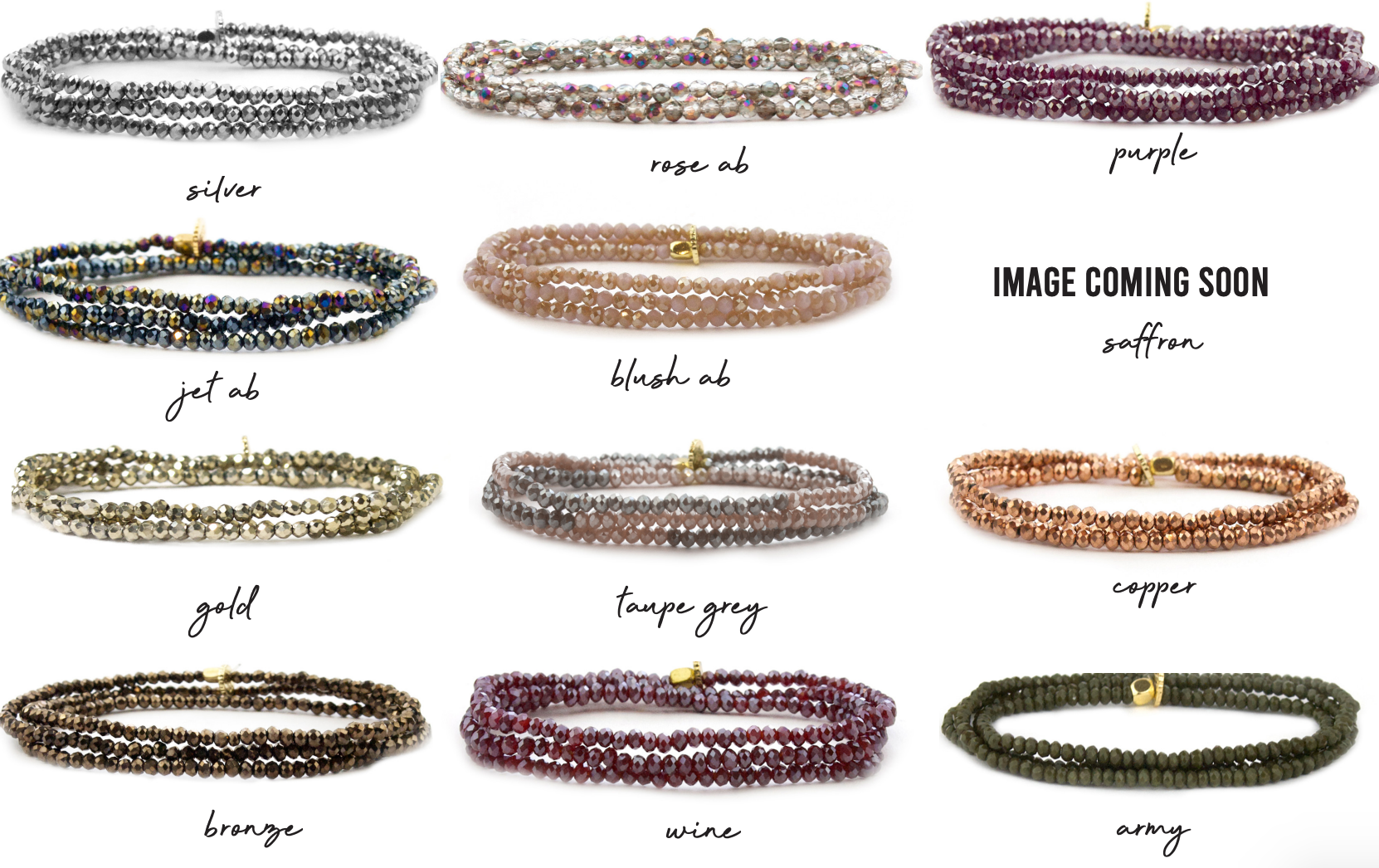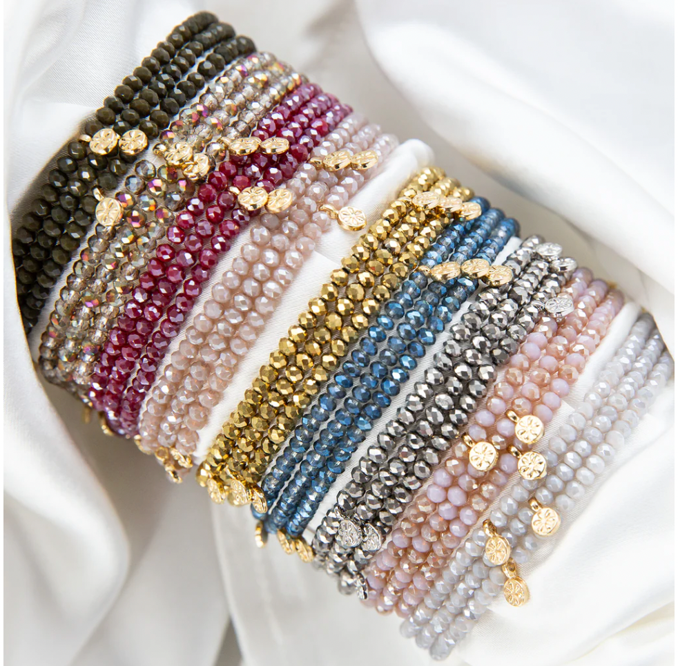 mini crystal stretch wrap bracelet with mini discs. Approx. 20" length